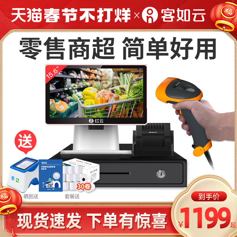 办公设备/耗材/相关服务^收款机^^^广东 东莞^客如云收银机一体机餐饮收银机超市饭店收银机水果称重扫码点餐机红云2C 美团外卖收银系统管理一体机 收款机
