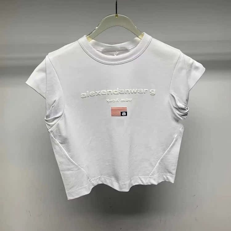 AW大王2021夏新款时尚字母logo印花T恤修身无袖设计感短款上衣女热门设计联盟服务商