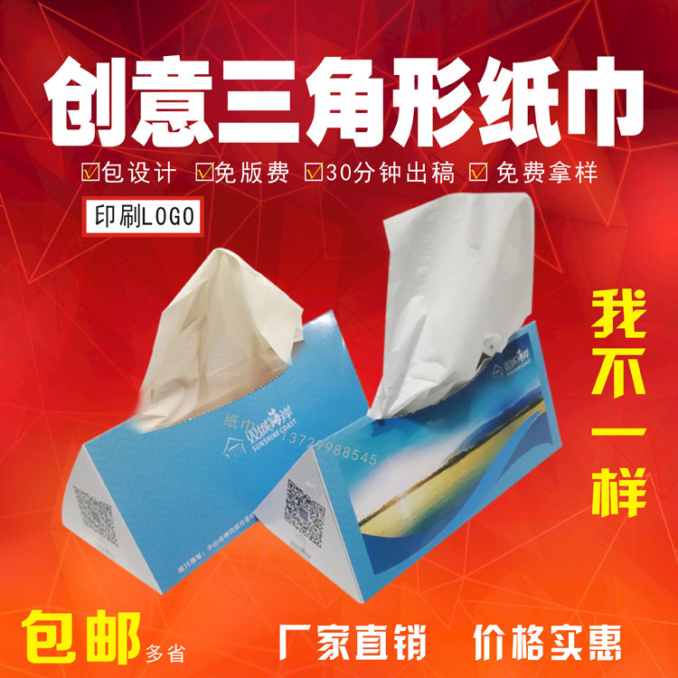 创意纸巾定制三角形纸巾定做盒装纸巾房地产广告宣传礼品可印logo热门设计联盟服务商