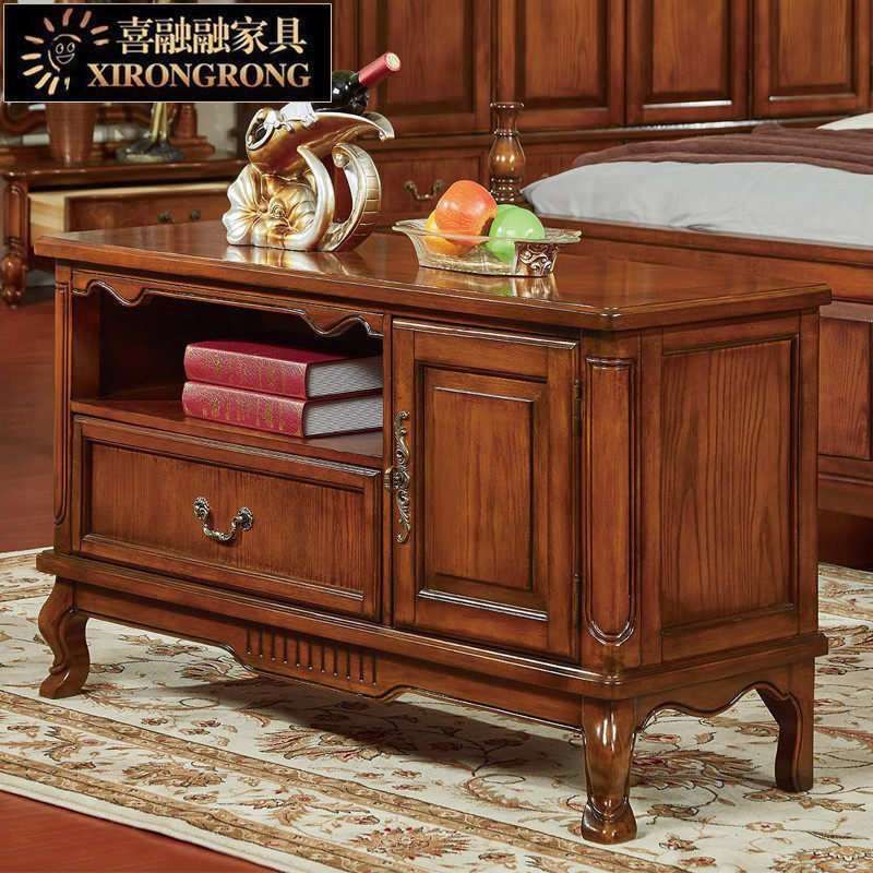美式实木复古电视柜 简约欧式1.2米卧室小户型影视柜 多功能 高款热门设计联盟服务商