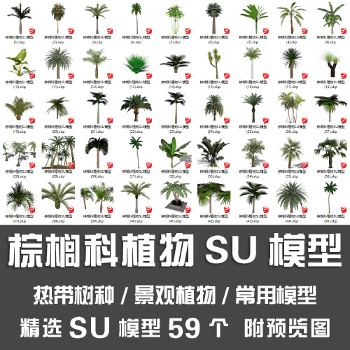 棕榈科植物SU模型/东南亚棕榈树椰子树3D热带树种景观植物SU模型热门设计联盟服务商