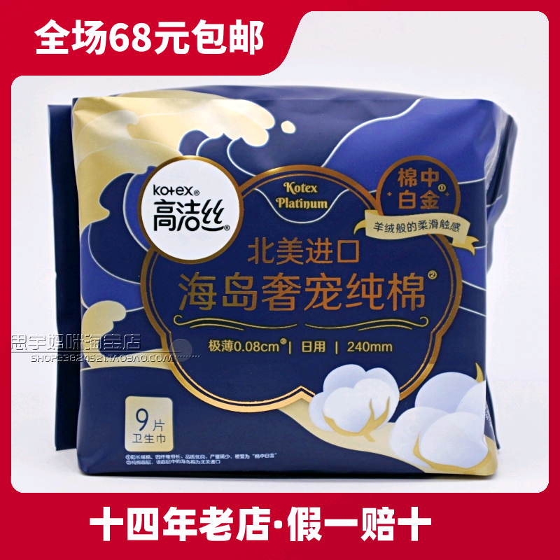 高洁丝 海岛奢宠纯棉日用卫生巾9片装 极薄0.08cm棉中白金 新产品热门设计联盟服务商