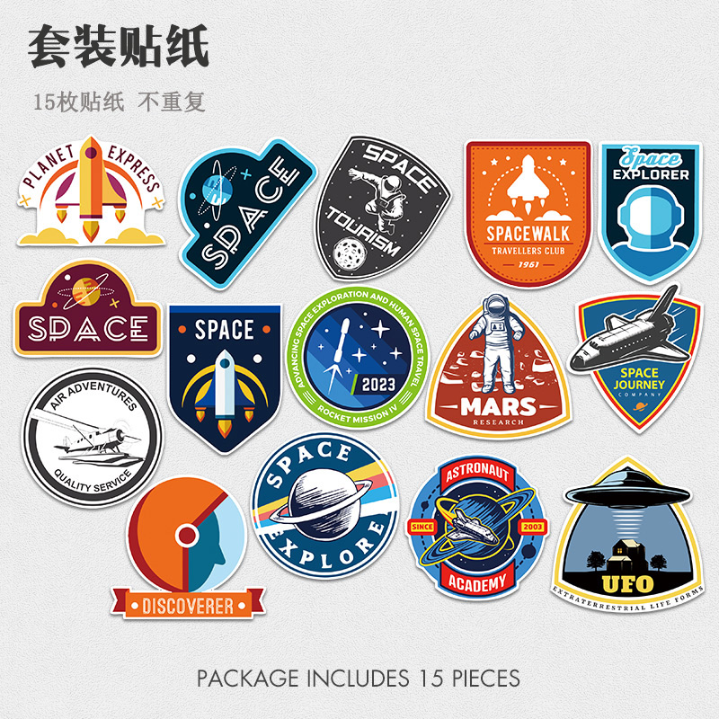 太空探索标志贴画行李箱旅行箱苹果笔记本电脑手机水杯宇航员贴纸潮牌个性装饰涂鸦卡通创意中国风女ins风热门设计联盟服务商
