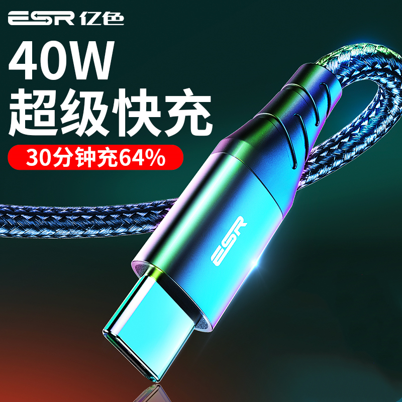 ESR亿色type-c数据线适用于华为P40/30/20充电器线小米11/10/9/8红米K30手机Mate快充typc安卓5A荣耀nova弯头热门设计联盟服务商
