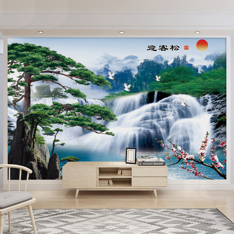迎客松电视背景墙壁纸山水风景中式5d墙纸8d客厅影视墙布装饰壁画热门设计联盟服务商
