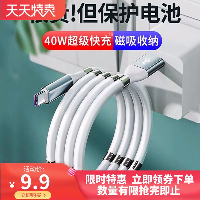 魔绳40W数据线磁吸收纳数据线手机type-c苹果安卓5A快充闪充通用热门设计联盟服务商