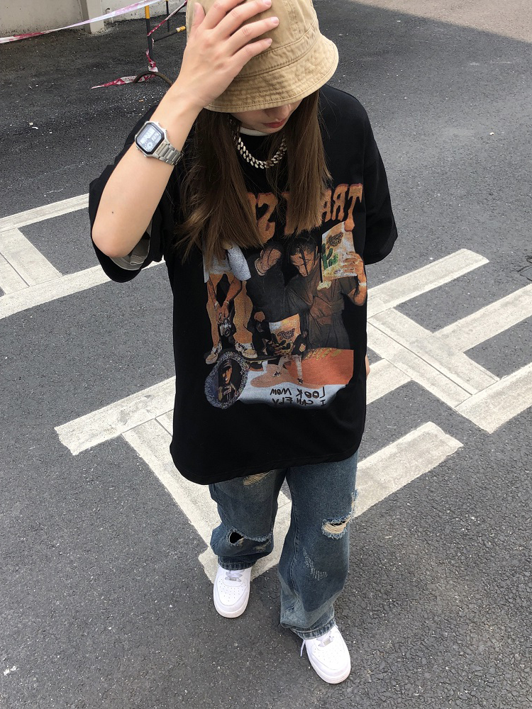 欧美复古短袖2021年新款夏季潮牌ins宽松情侣高街设计感T恤女上衣热门设计联盟服务商