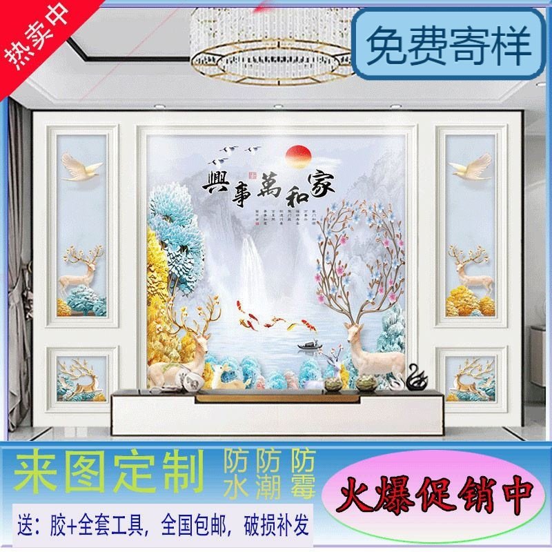 定制电视背景墙3D立体墙纸8D影视墙壁布5D壁画背景墙中式自带边框热门设计联盟服务商