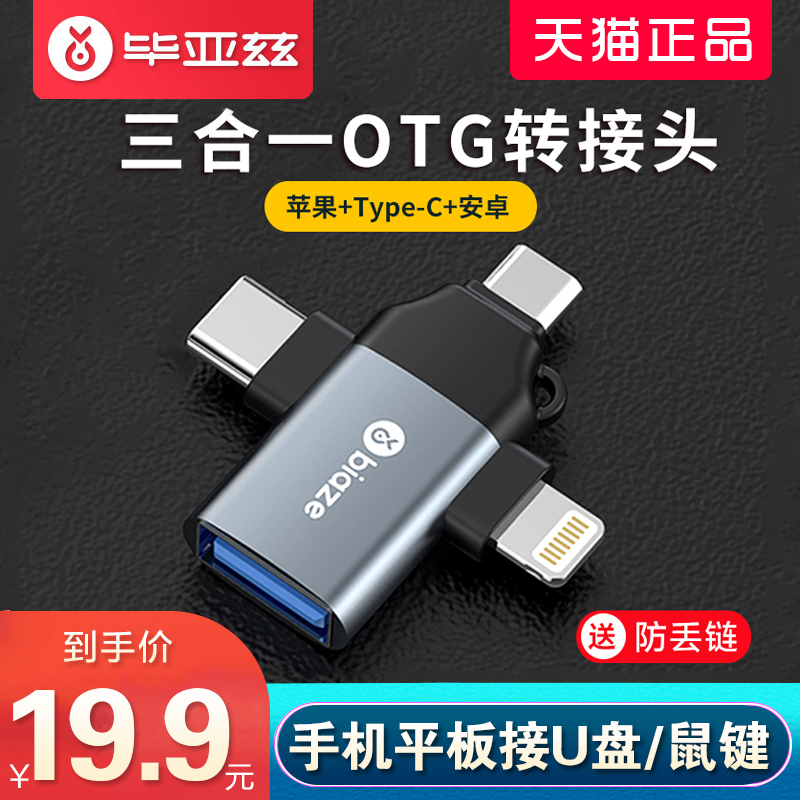 otg转接头三合一苹果安卓type c通用手机U盘转换器多功能下载适用于华为p30荣耀手机oppo小米9连接优盘usb口热门设计联盟服务商