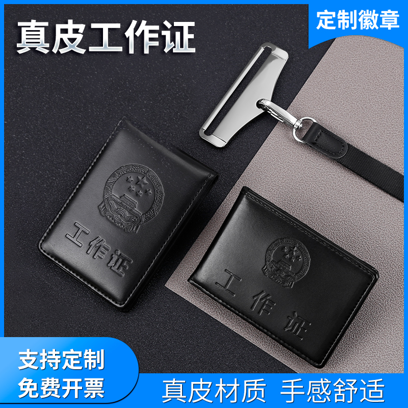 真皮工作皮套政府公务职员工作牌工牌单位工卡胸牌外壳带挂绳牛皮出入证门禁卡套国徽章执勤企业保护套热门设计联盟服务商
