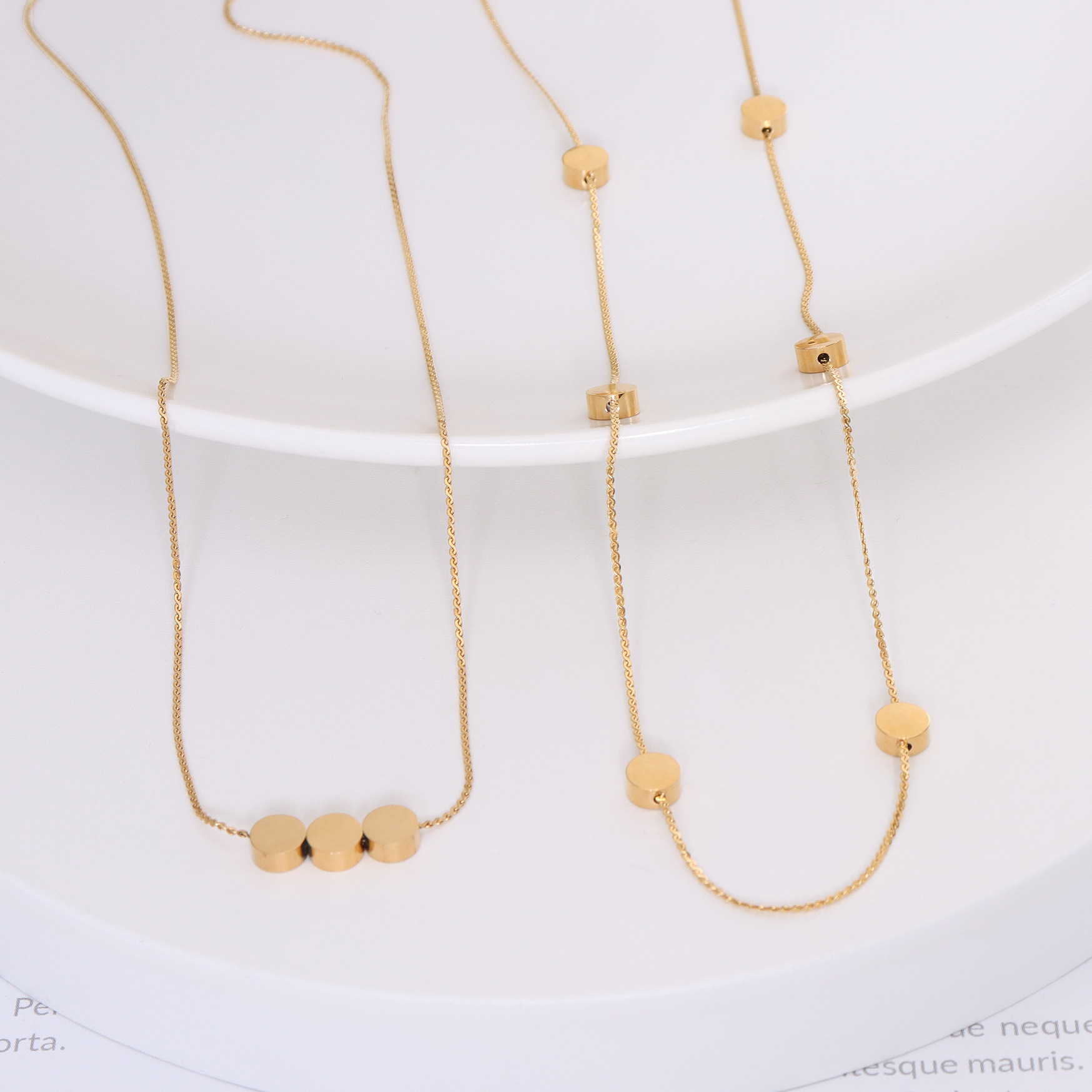 欧美个性轻奢小众设计平面链钛钢18金小金豆锁骨项链设计高级感热门设计联盟服务商