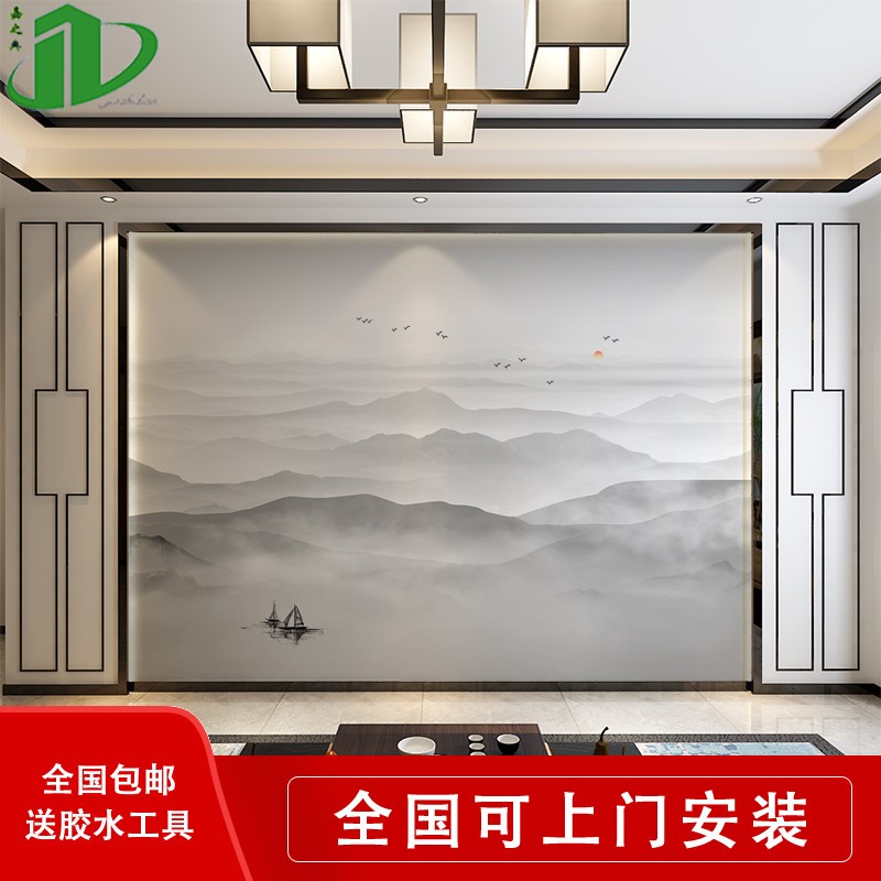 2021新款中式山水墙布电视背景墙壁纸客厅墙纸影视墙壁布卧室壁画热门设计联盟服务商