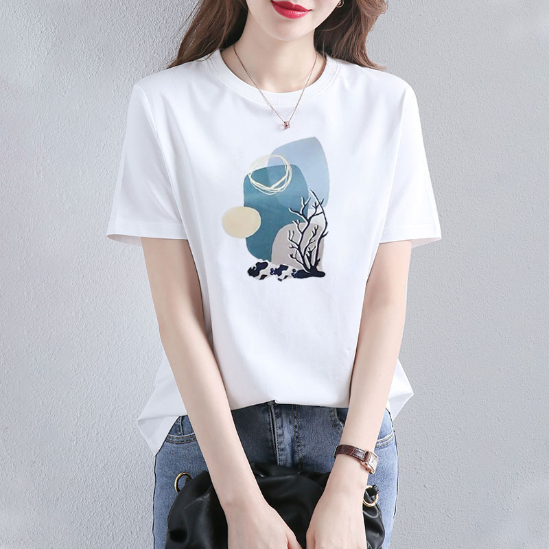 欧洲站2021夏新款纯棉印花白色短袖T恤简约百搭设计感女小众上衣热门设计联盟服务商