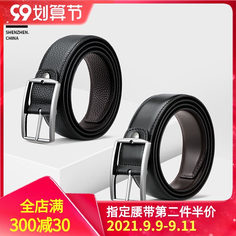 七面男士纯牛皮2021新款双面用夏季配饰潮流ins商务休闲针扣裤带热门设计联盟服务商