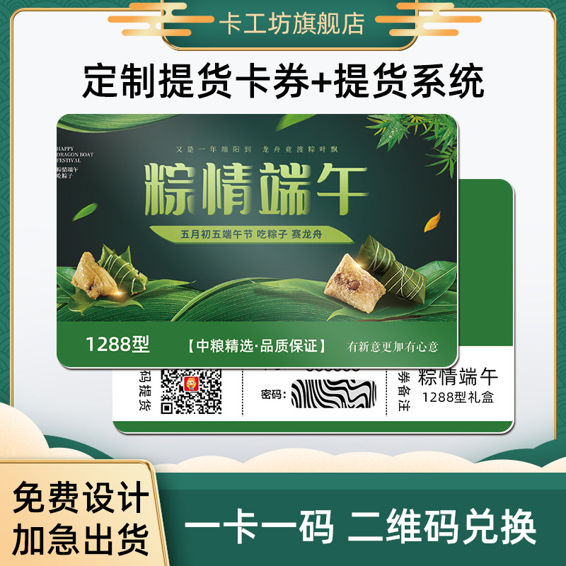 定制定做端午节粽子券礼品卡二维码密码刮刮提货卡系统软件微信公众号小程序PVC卡礼盒包装热门设计联盟服务商