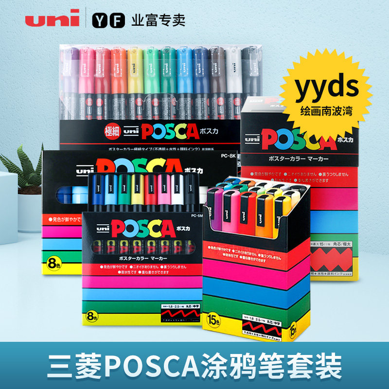日本uni三菱POSCA系列 PC-1M/3M/5M POP海报广告笔记号笔马克笔标记笔绘画手绘三菱PC系列盒装丙烯马克笔儿童热门设计联盟服务商