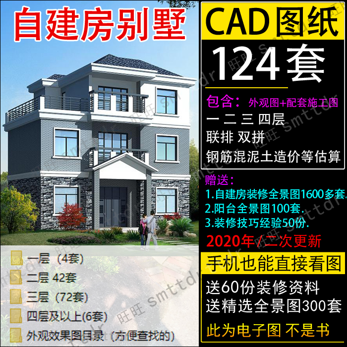 房子设计图农村自建房二层半三层双拼乡村小户型别墅CAD施工图纸热门设计联盟服务商