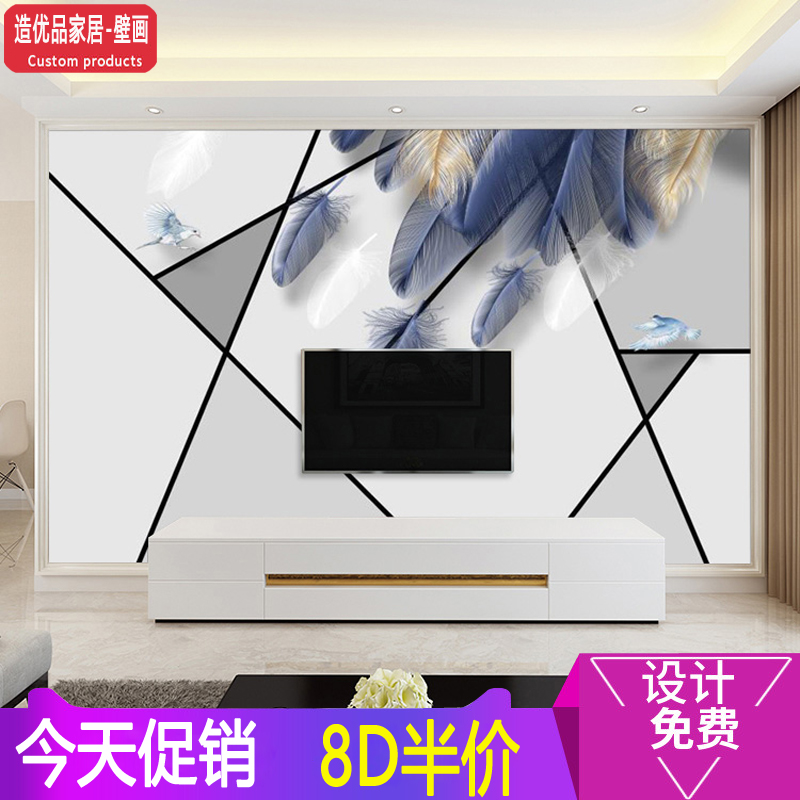 壁纸北欧电视墙新款背景墙简约客厅几何影视8d壁画布不规则墙现。热门设计联盟服务商