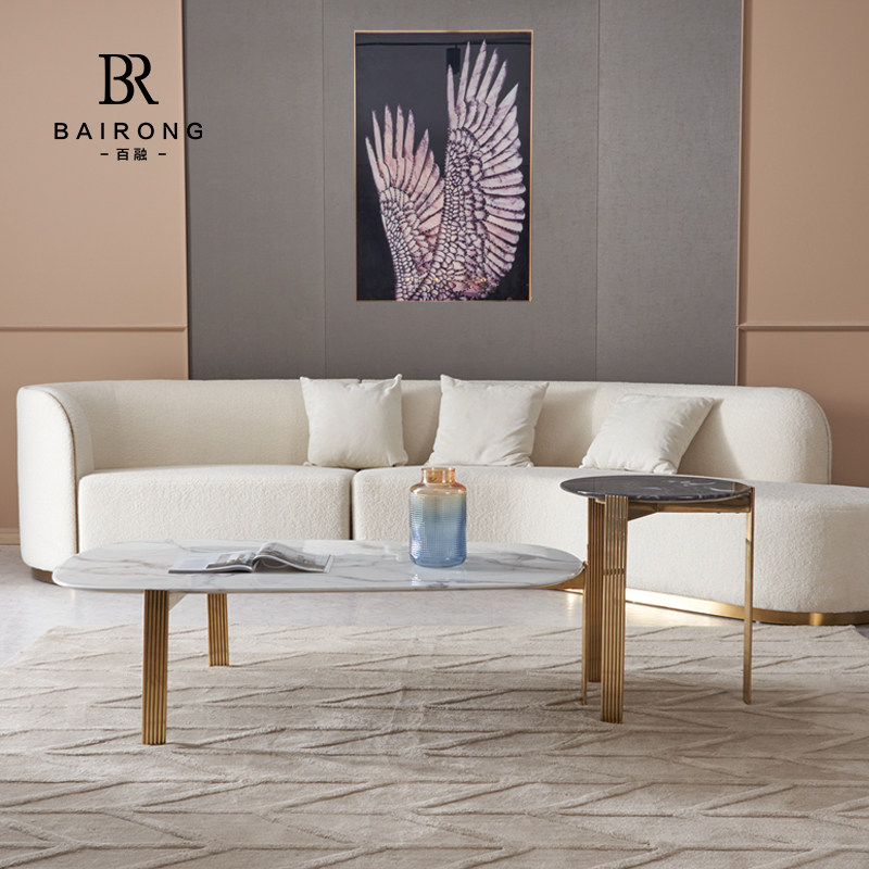 B.R.意式轻奢大理石茶几高级感设计师款椭圆形茶几简约后现代别墅热门设计联盟服务商