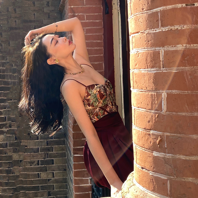 XIAOLI枫叶红鱼骨印花辣妹小吊带背心内搭夏设计感小众外穿上衣女热门设计联盟服务商