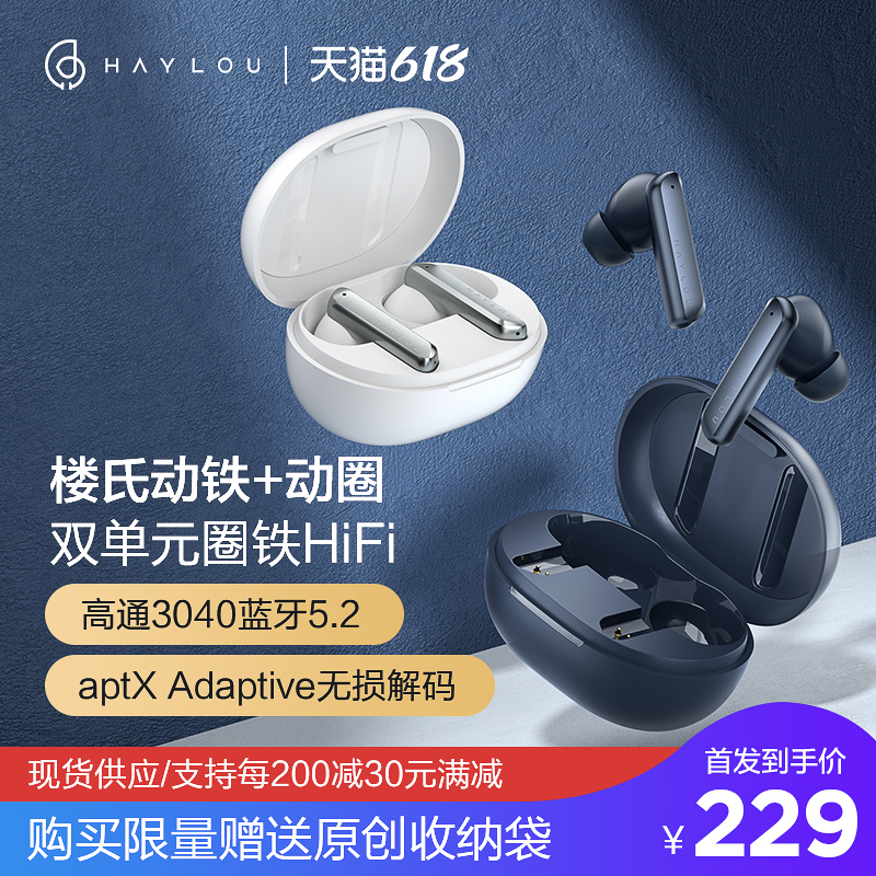 【楼氏动铁 圈铁四单元高通3040】Haylou/嘿喽 W1蓝牙耳机真无线蓝牙5.2适用小米华为苹果安卓oppo一加hifi热门设计联盟服务商