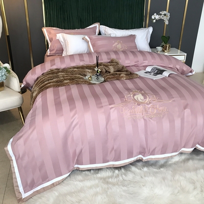 时尚条纹纯棉床单四件套全棉欧式奢华被套床笠五星级酒店床上用品热门设计联盟服务商