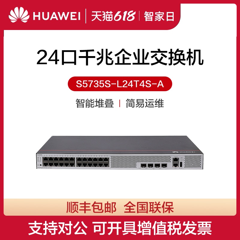 Huawei/华为交换机S5735S-L24T4S-A企业级24口千兆以太网+4口千兆光企业网络网线分线器分流器交换机交换器热门设计联盟服务商