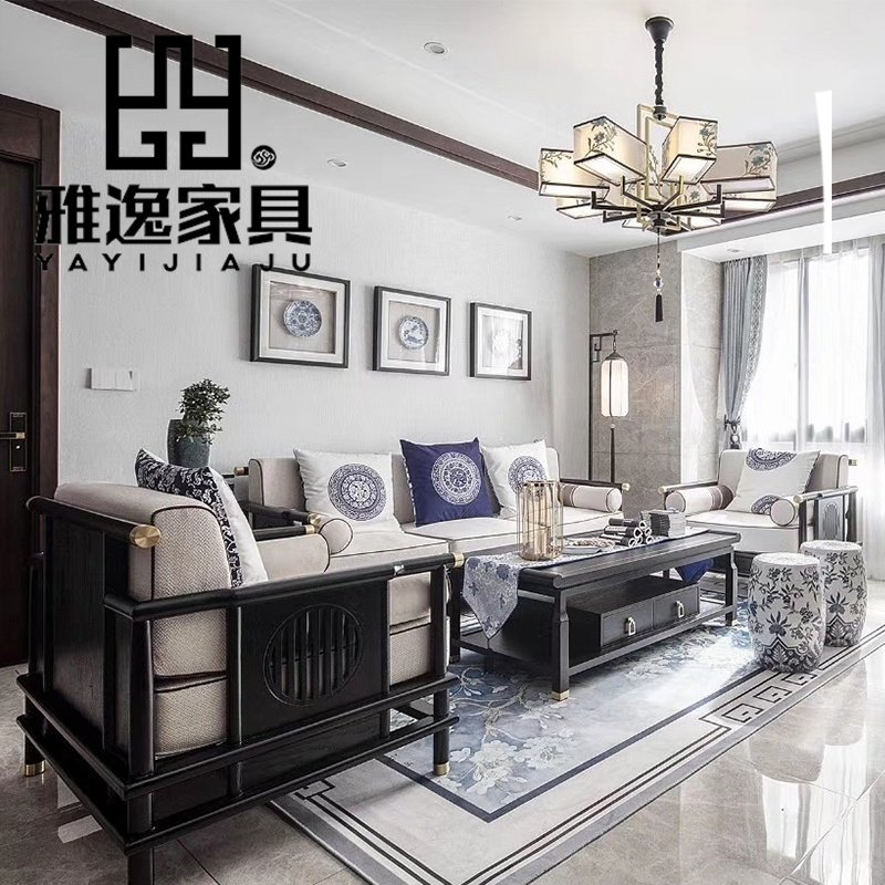 新中式实木沙发组合简约现代客厅样板房酒店民宿会所家用定制家具热门设计联盟服务商