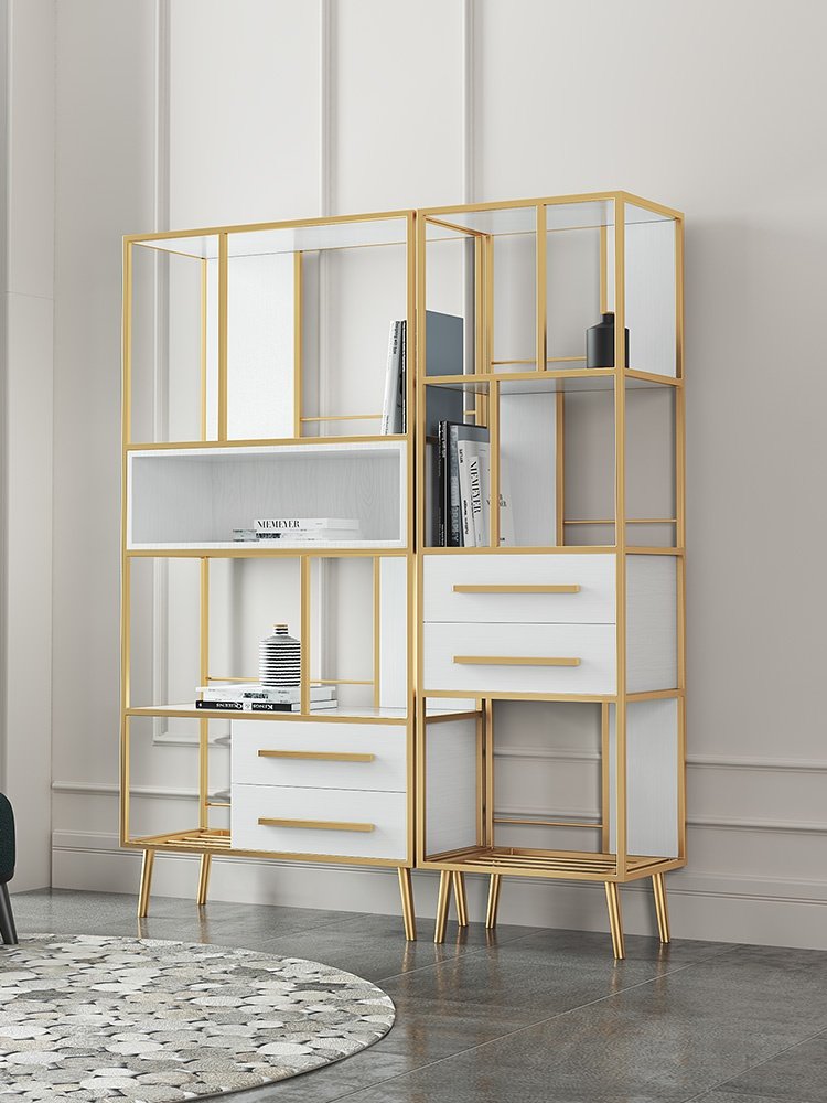 书房现代书柜组合北欧落地w轻奢风书架靠M墙展示柜办公室铁艺置物热门设计联盟服务商