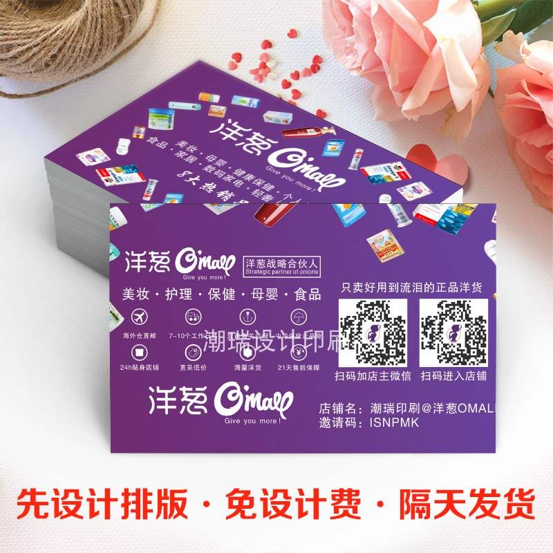 洋葱海外仓名片免费设计 地推用品小礼品海报宣传单易拉宝定制作热门设计联盟服务商