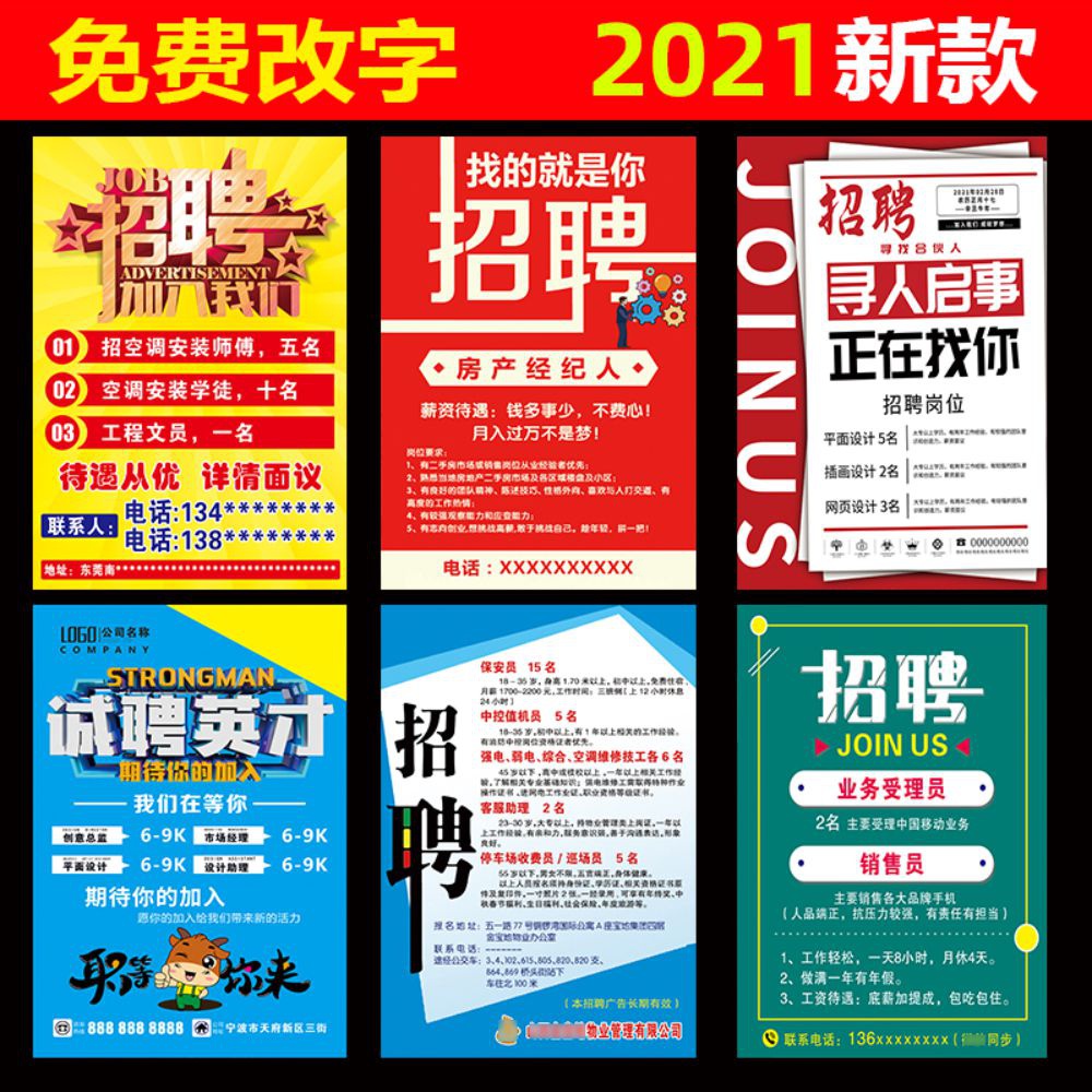 工厂美容院招聘海报设计制作招工平安广告贴纸易拉宝信息展架打。热门设计联盟服务商
