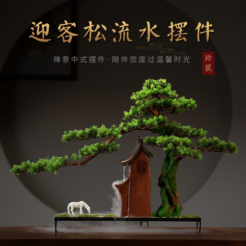 创意流水摆件招财迎客松盆景微景观客厅喷泉雾化加湿办公室装饰品热门设计联盟服务商