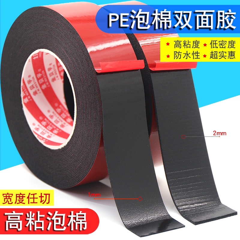PE黑色泡棉双面胶带高粘度防水泡沫海绵双面胶铭牌贴铝合金门窗相框摆件固定kt板木板铁板广告牌强力车用加厚热门设计联盟服务商