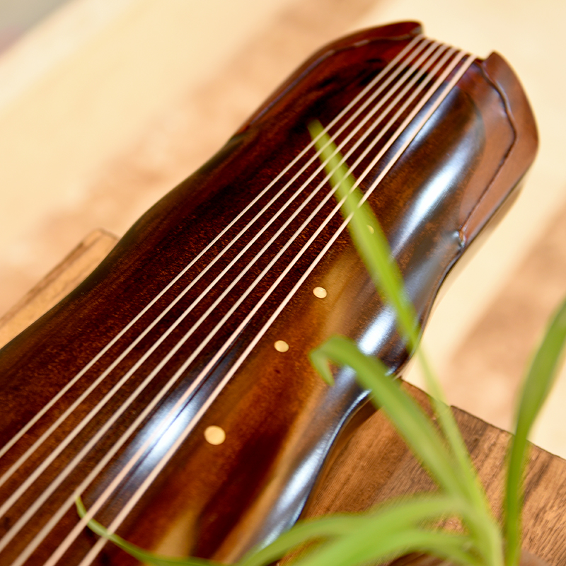 永乐古琴落霞式扬州名师手工精斫老杉木琴生漆鹿角霜送桌。热门设计联盟服务商