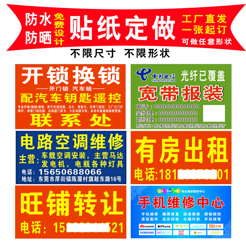 贴纸定做防水背胶贴自粘贴不干胶广告贴异形定制图片文字海报印刷热门设计联盟服务商