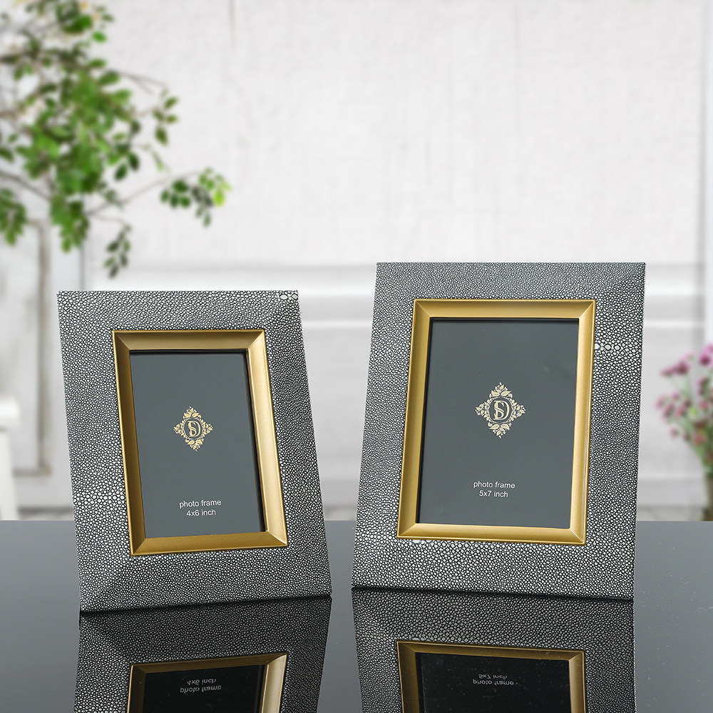 现代轻奢金属皮质照片相册相框摆台6寸7寸装饰画框样板房创意摆件热门设计联盟服务商