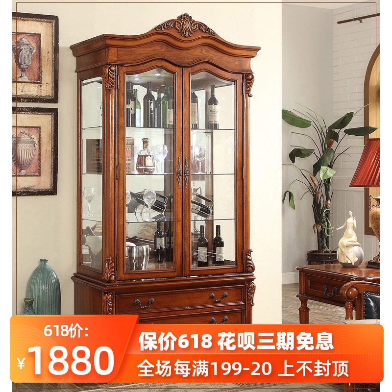 美式实木双门酒柜欧式收纳装饰柜客厅储物展示柜复古玻璃单门酒柜热门设计联盟服务商