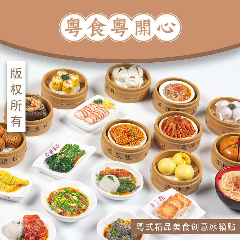 创意中国风卡通可爱广东粤式地方小吃仿真食物冰箱贴3d立体磁性贴热门设计联盟服务商