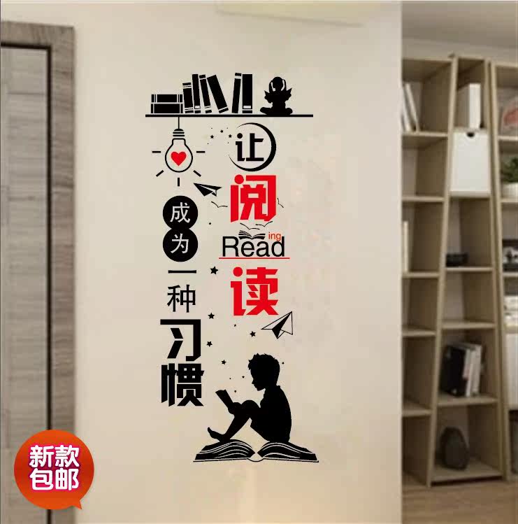 图书馆励志激励墙贴纸学校教室班级文化墙布置装饰标示贴书房贴画热门设计联盟服务商