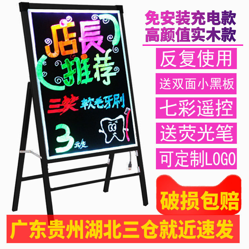 纽缤LED广告牌手写黑板发光板实木宣传广告地滩店铺招牌立式悬挂热门设计联盟服务商