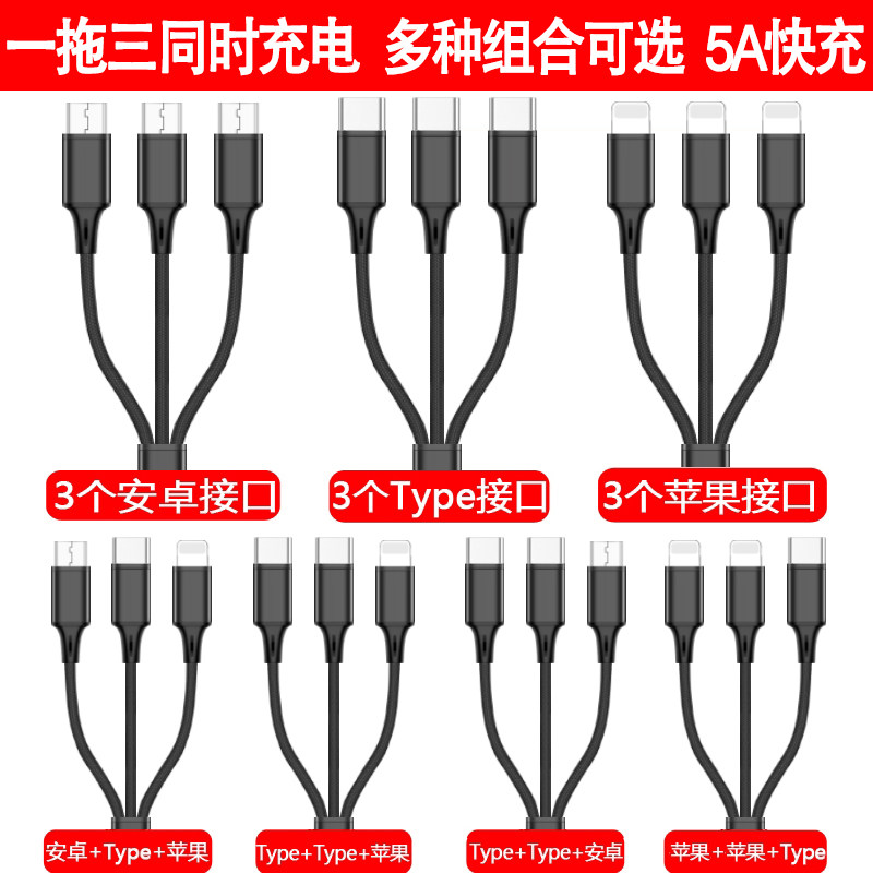 适用数据线三合一ios手机通用一拖三type-c多功能安卓充电线车载热门设计联盟服务商