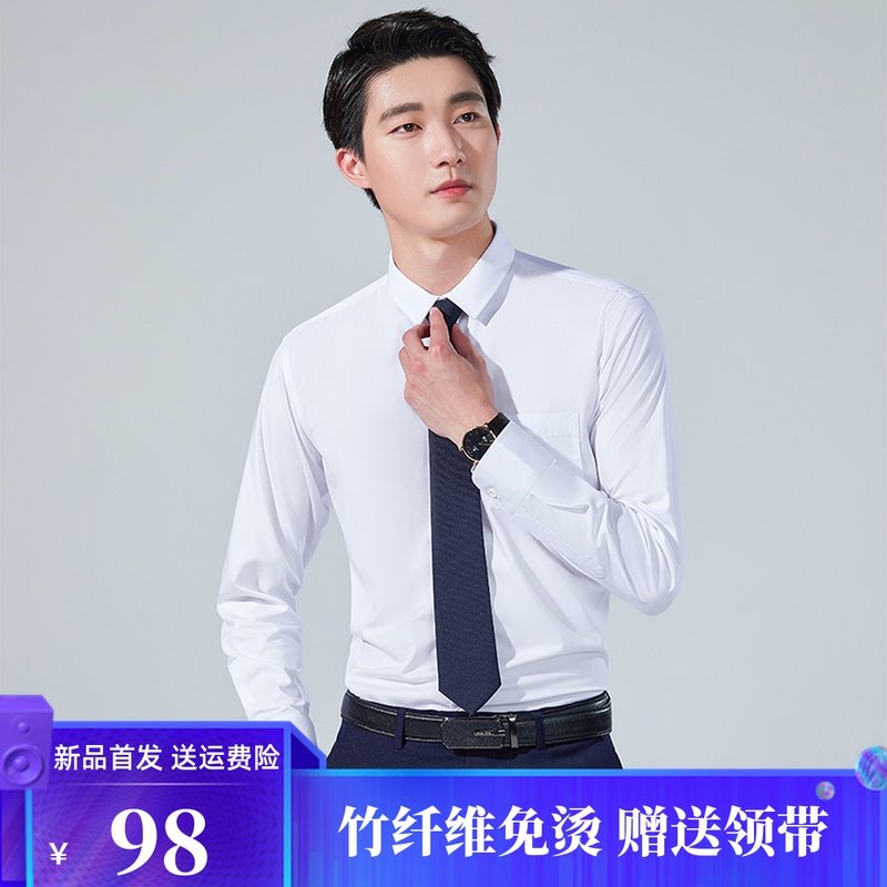 竹纤维白色衬衫男长袖修身免烫力商务正装职业装工作服高端衬衣热门设计联盟服务商