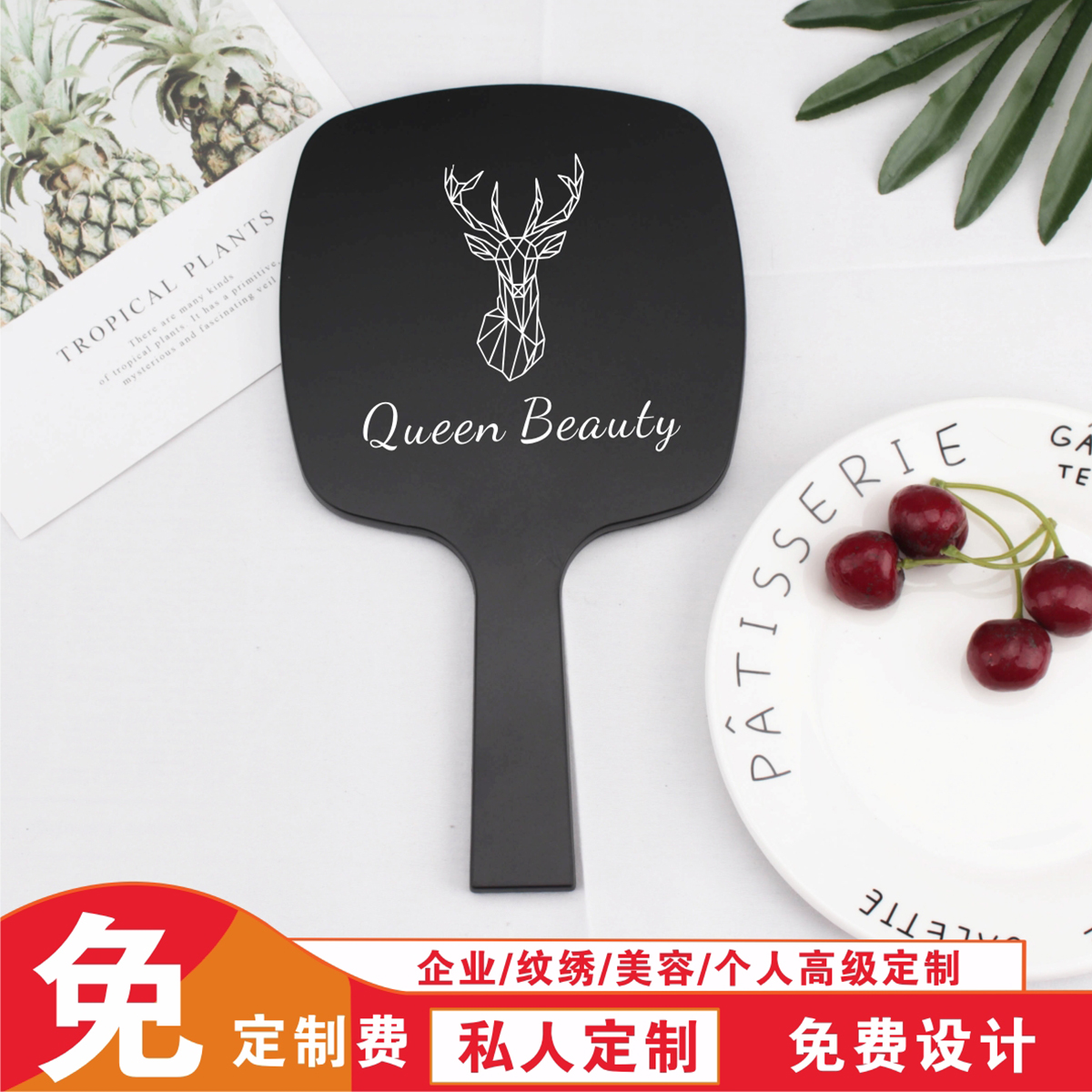 手持化妆镜定制logo半永久纹绣美容梳妆镜牙科手柄镜便携广告印刷热门设计联盟服务商