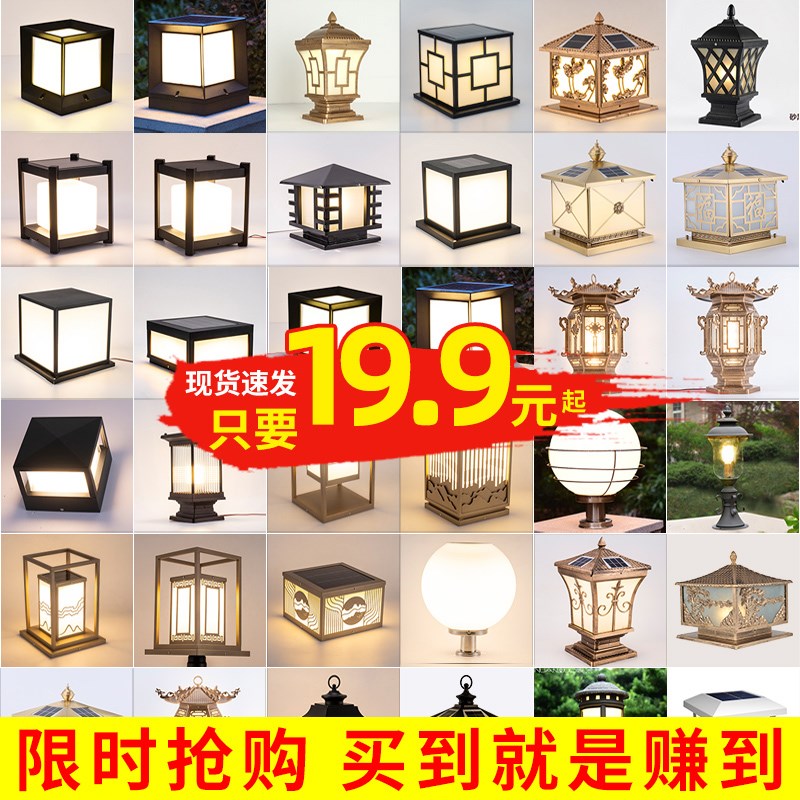 户外太阳能柱头灯特价活动别墅围墙道路大门口庭院景观灯具热门设计联盟服务商