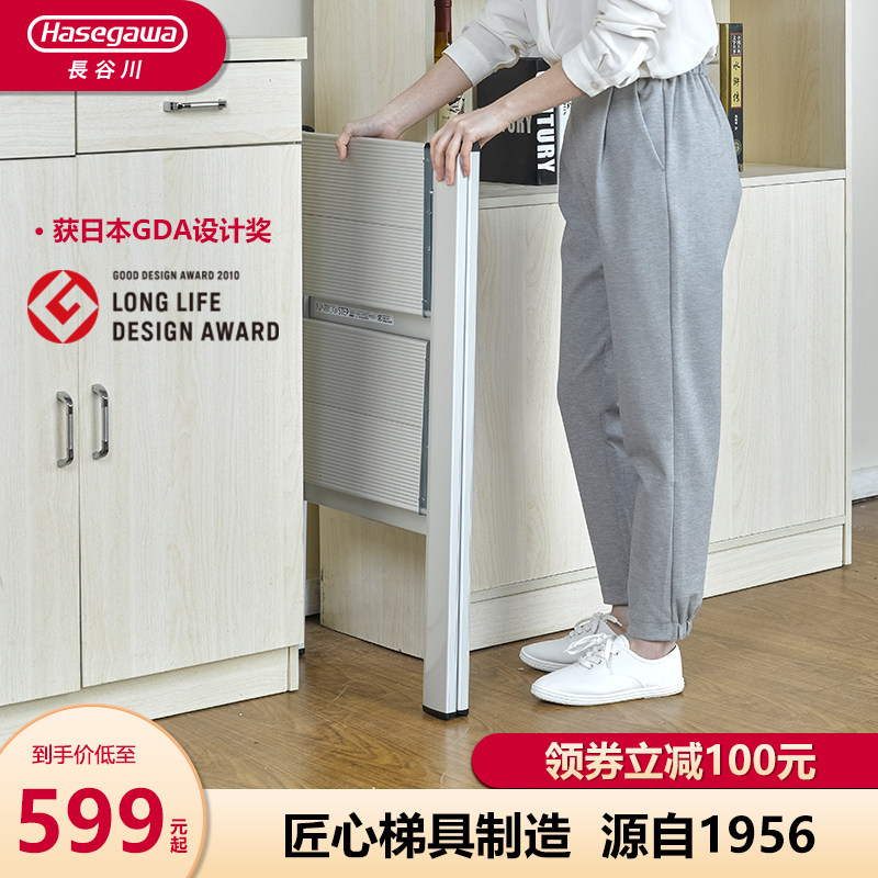 日本长谷川铝合金梯子超薄收纳折叠梯人字梯家用宽踏板梯凳设计款热门设计联盟服务商
