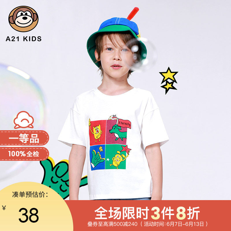 A21童装男童t恤短袖夏装纯棉儿童短袖体恤男潮卡通男孩子t恤上衣热门设计联盟服务商