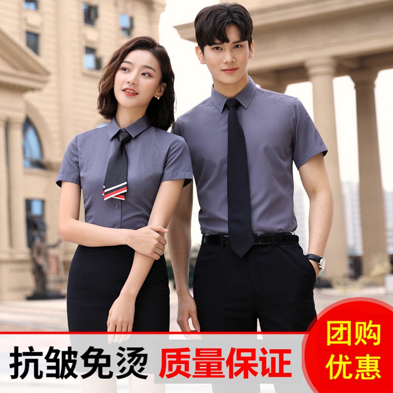 职业套装短袖白衬衣男女同款夏季衬衫商务工装销售工作服刺绣LOGO热门设计联盟服务商