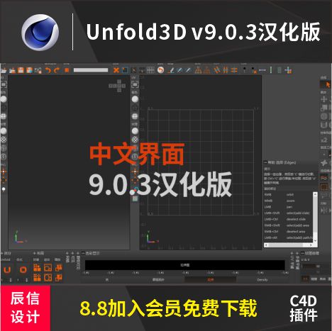 Unfold3Dv9.0.3汉化版Unfold3D插件Unfold3D贴图软件C4D热门设计联盟服务商