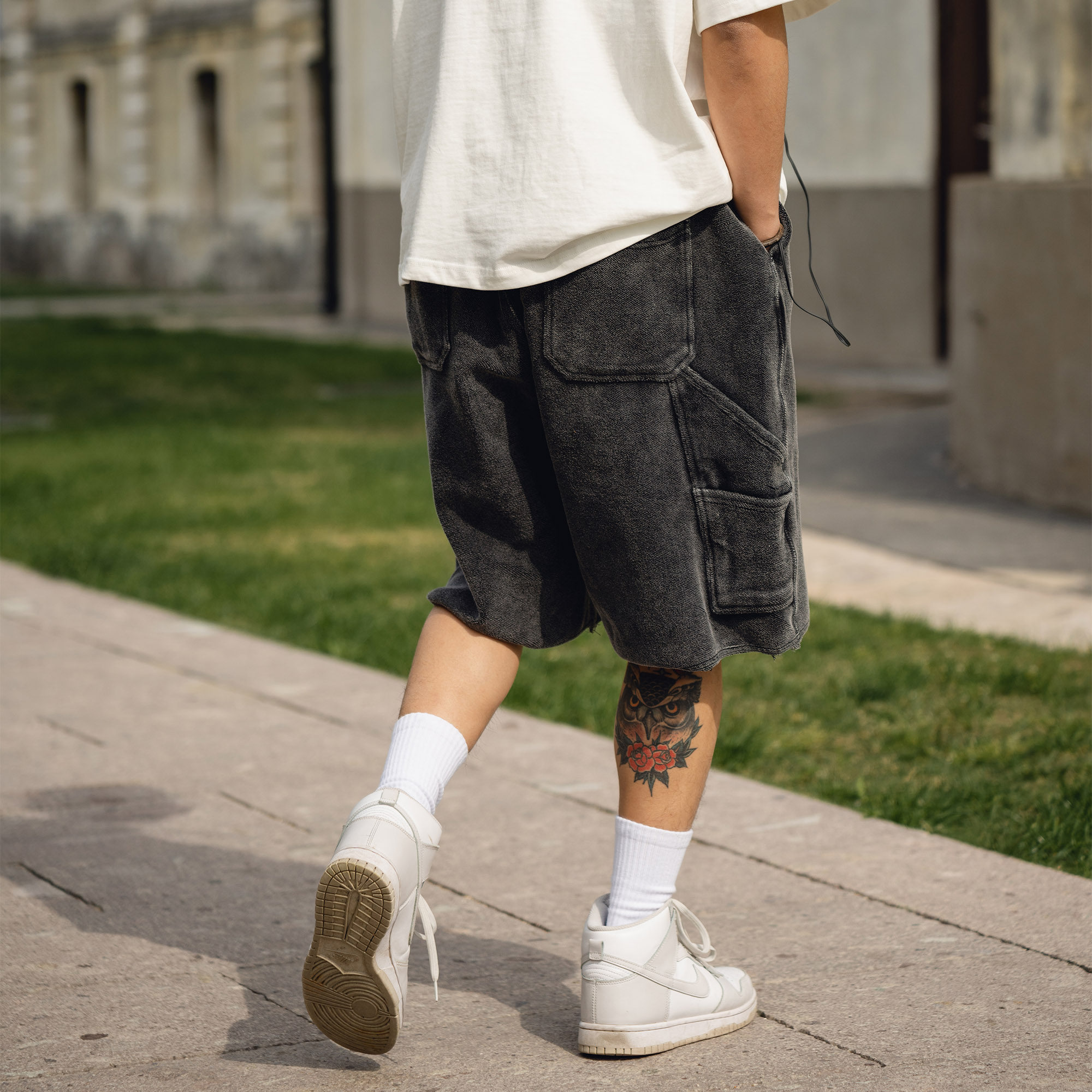 ERICE MADE日系重磅反绒面水洗短裤男多口袋五分裤宽松针织工装裤热门设计联盟服务商