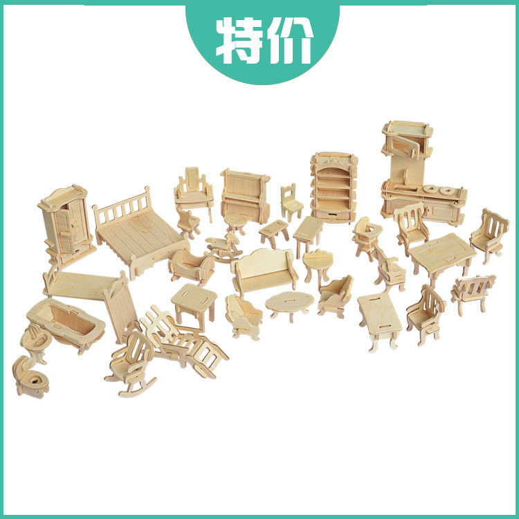 木制3D立体拼图仿真模型益智玩具迷你家私小家具创意生日礼品包邮热门设计联盟服务商